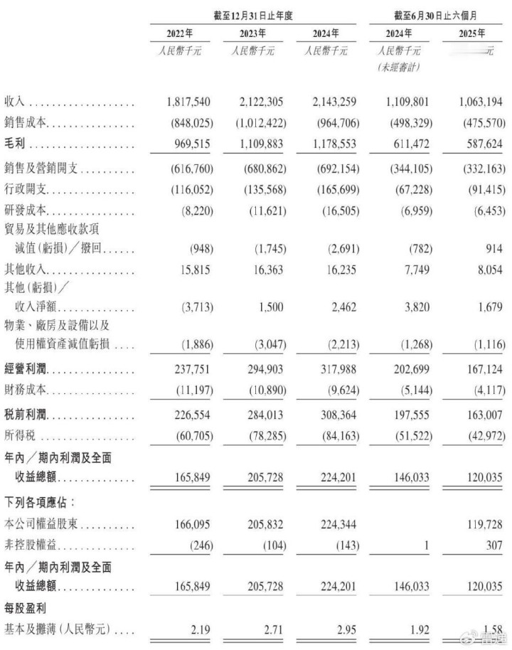招股书显示,八马茶业2022年、2023年、2024年营收分别为18.18亿、21.22亿、21.43亿;毛利分别为9.7亿、11亿、11.79亿;经营利润分别为2.38亿、2.95亿、3.18亿;期内利润分别为1.66亿、2.06亿、2.24亿。