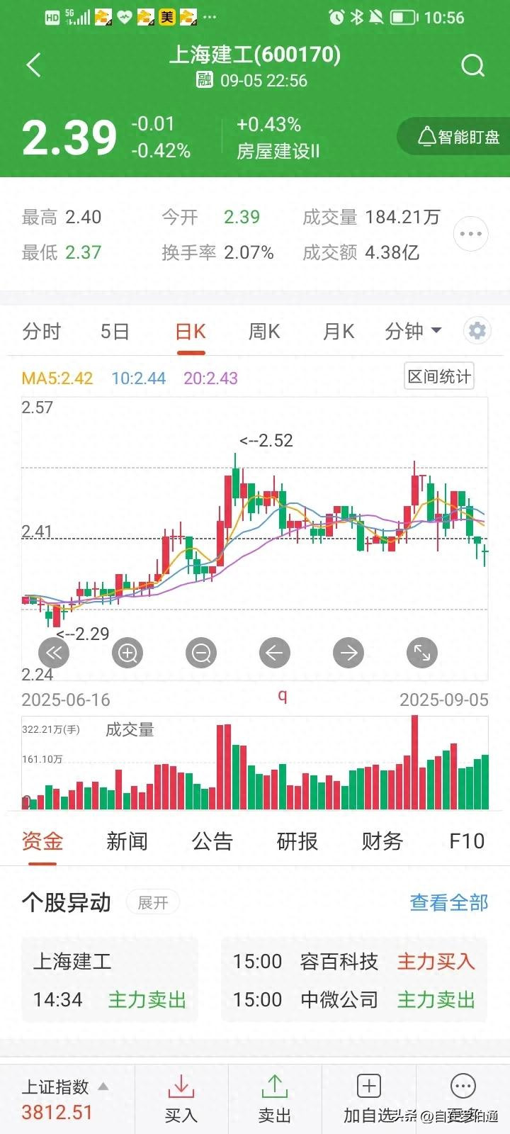 上海建工股价收报2.39元,跌0.42%,整天走的仍然是织布机行情,三分钱的波动玩一天,看得人打瞌睡。