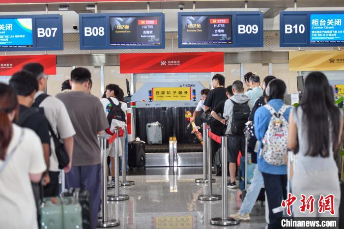 5月30日,海南航空“海口吉隆坡”国际航线通航。图为旅客在海口美兰国际机场办理值机手续。中新社记者骆云飞摄
